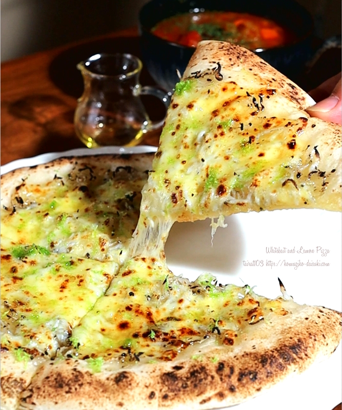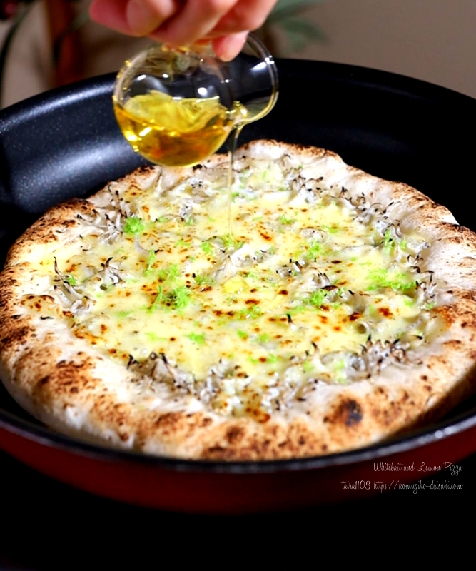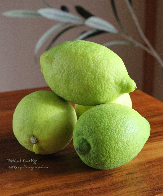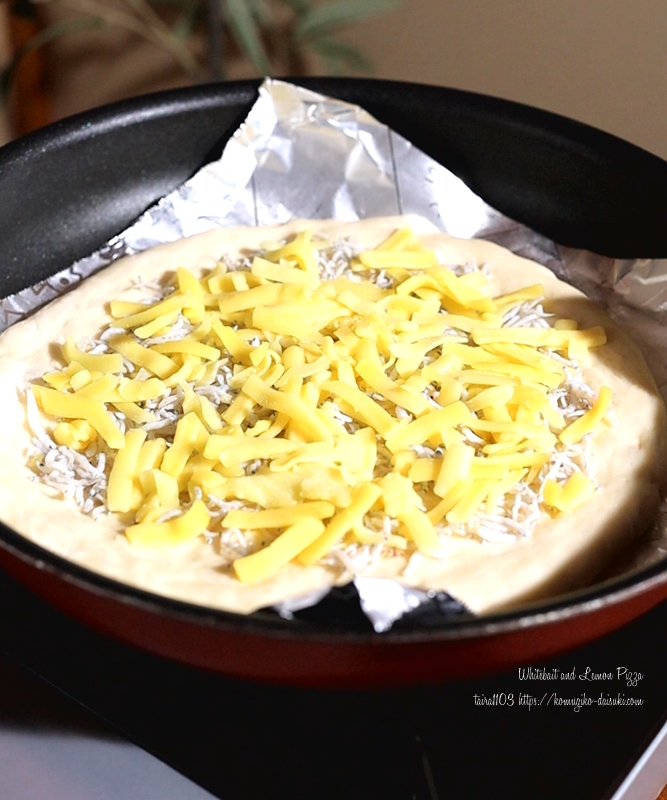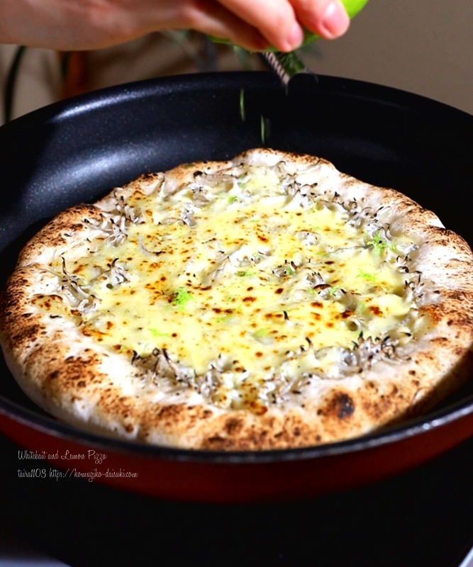 地元産レモンが6個298円と破格の値段で売られてたので、大好きなシラスとレモンを乗っけたピザにする!