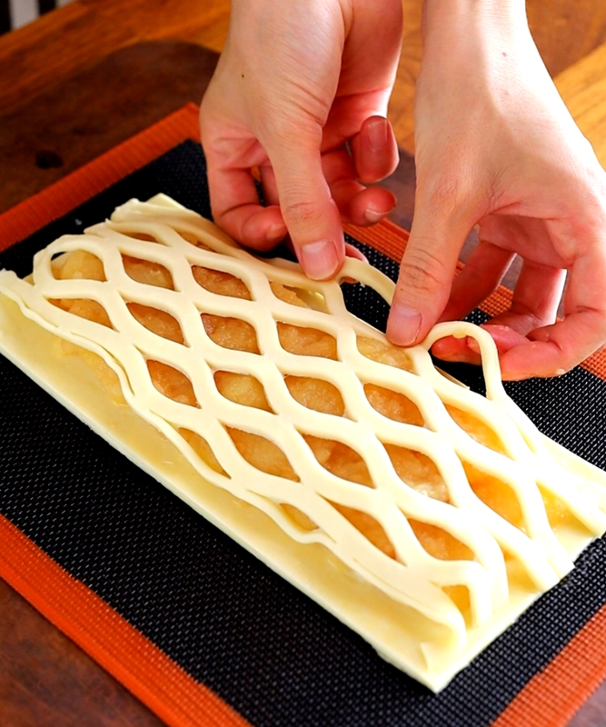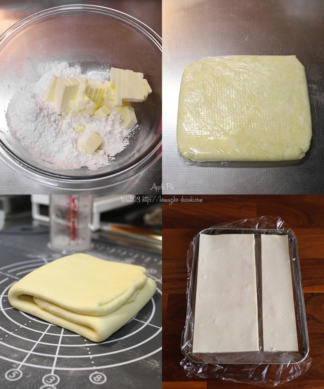 パイ生地は👆のレシピを2倍量で作っていて、折り込みの回数を6回にしてます。