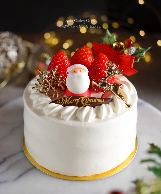 苺とクリスマス飾りを乗せたら完成~!一気にそれっぽくなった🎄🎅