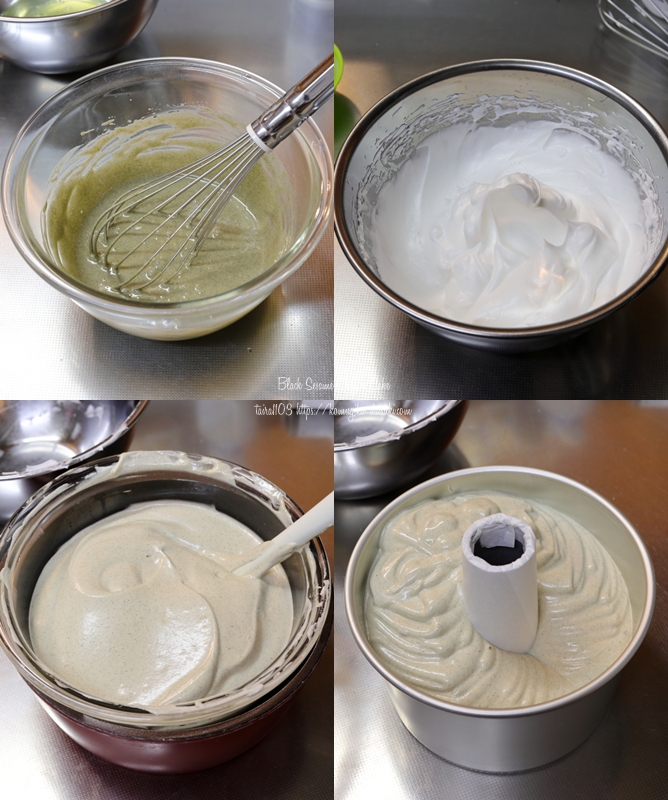 プレーンのシフォンレシピに黒練りごまを追加しようと思うんだけど…