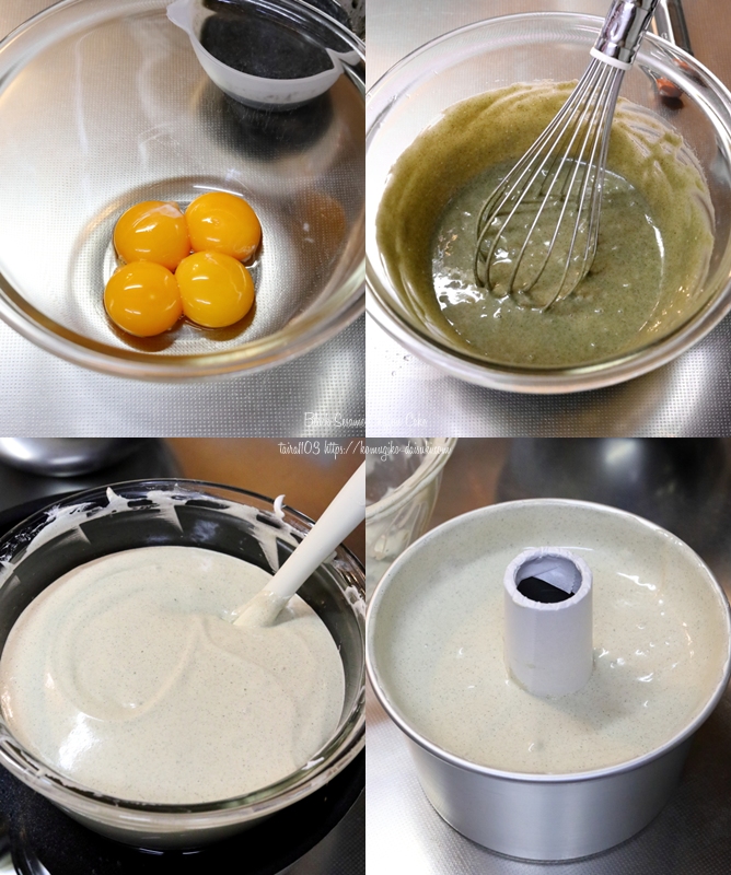1台目のシフォンよりもこめ油を増量。乳成分も水分&粉末で追加。水あめや塩も入れてシッカリ副材料を入れてみた。